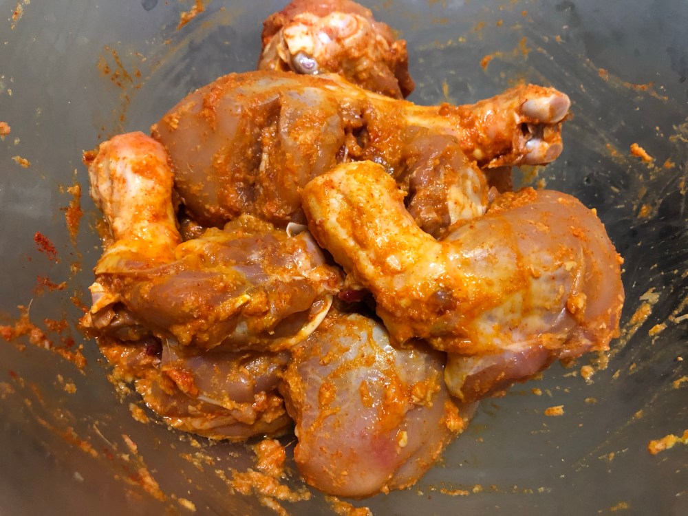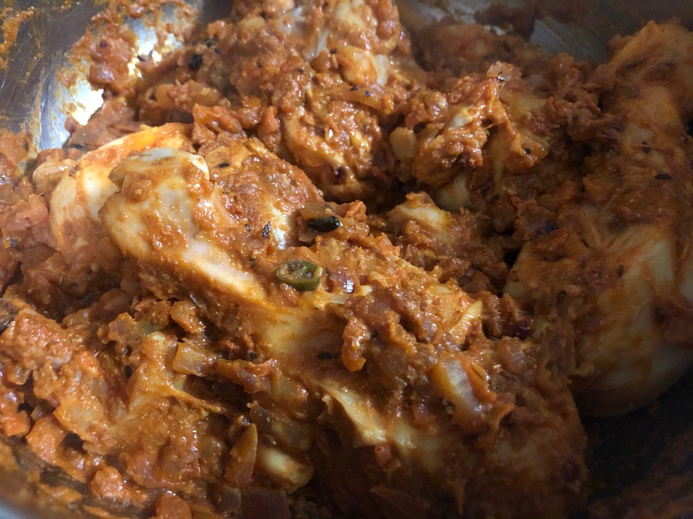 - To save time, you can chop onion, tomatoes and also start making the curry while the chicken marinates in the refrigerator.