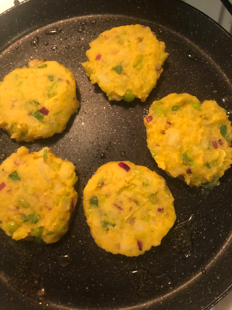 - Grease the pan with cooking oil and heat it on medium heat. Carefully place the refrigerated cutlets on it, and shallow fry them on both sides until they turn golden brown. Add an extra tablespoon or two of oil if you feel the need.